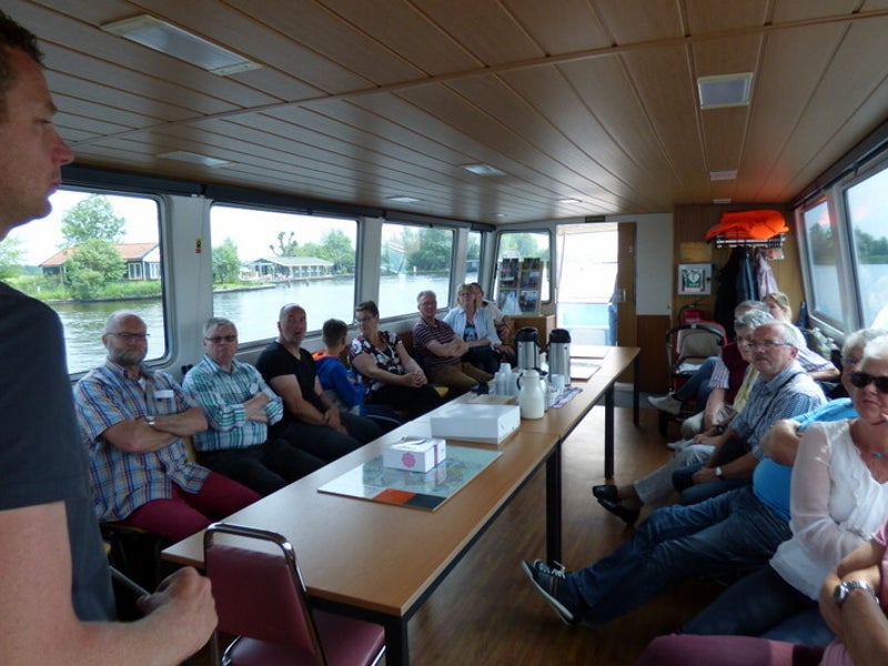 Op zaterdag 28 mei 2016 hadden we weer ons jaarlijks BEO-uitje. Dit jaar stond een rondvaart door het natuurgebied de Alde Feanen bij Eernewoude op het programma. In dit gebied is onze secretaris Germ heel goed thuis, want dit is zijn werkgebied. We stapten kwart over 1 op de rondvaartboot en vaarde geruisloos door dit schitterende natuurgebied, want deze boot voer op zonne-energie. We waren met 19 personen en de 2 kinderen van Germ, een mooie opkomst. Sicco had voor koffie en gebak gezorgd en Germ gaf ons uitleg over de omgeving. Hij vertelde over het ontstaan, het onderhoud en de toekomst van dit mooie gebied. In de oorlog zijn er ook enkele vliegtuigen neergestort in dit gebied en 1 daarvan zal binnenkort worden geborgen en mogelijk zitten hier nog menselijke resten in. Ook zijn er diverse huisjes, kavels en eilandjes in handen van vooraanstaande Nederlanders.
