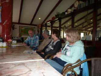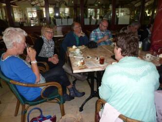 Achter het restaurant was een museum met allerlei attributen en gereedschap uit vervlogen tijden te bezichtigen. Daarna naar buiten bij de kooien en veldjes langs waar de dieren, vogels en vissen zich lieten bewonderen. Nadat alles bekeken was zijn we naar De Boet in Hoogwoud gereden, in het tuincentrum is alles te koop wat je maar kan bedenken en dus allemaal met een kofferbak vol weer naar huis. Om 17.00u verzamelen bij de auto en vervolgens naar de Zingende Wielen bij Den Oever, alwaar een gereserveerde tafel voor ons klaar stond. Er kwamen in de loop van een paar uur, na een lekker glaasje, warme broodjes, soep en veel later diverse soorten warm vlees met saus, friet, gebakken aardapeltjes, groente en toetjes voorbij waar we weer flink van hebben genoten.